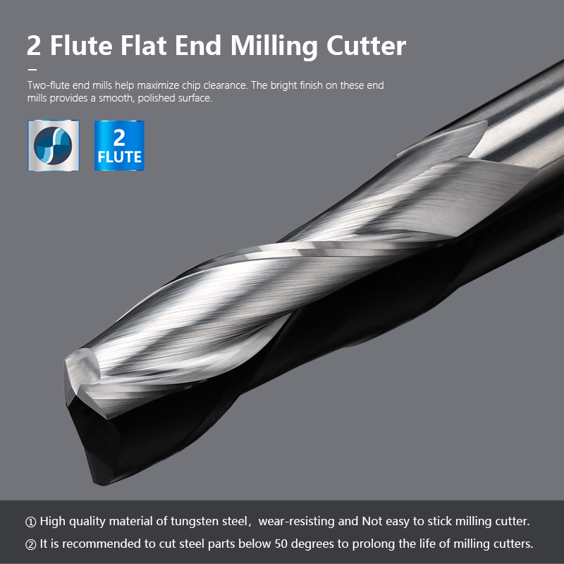 4. End mills are suitable for groove machining, side machining, and hole machining. Please adjust the speed, feed and cutting depth according to the actual cutting conditions.